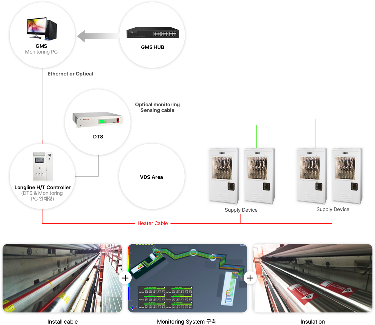 LLMS(Long Line Monitoring System)은 가스 라인 전체 온도를 실시간으로 사용자에게 Monitoring 하며